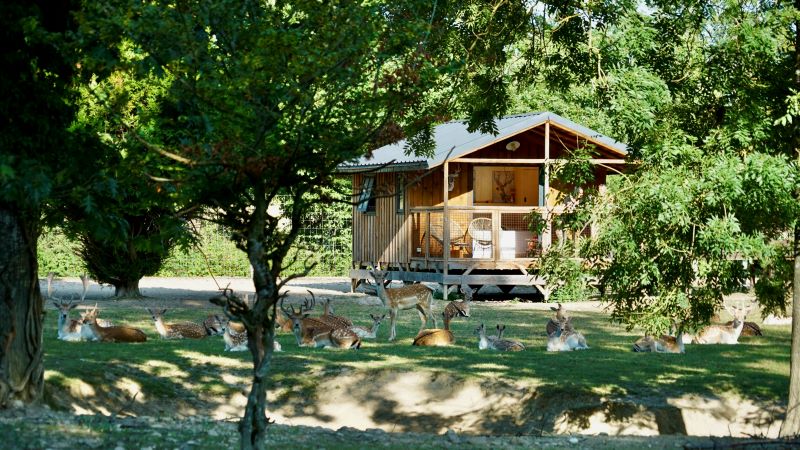 En amoureux, vous serez séduits par ce coin de paradis. Venez vous ressourcez dans cette belle cabane, perchée au dessus du parc des biches. Vous aurez le côté insolite de la cabane mais tout le confort de la maison avec eau et électricité.